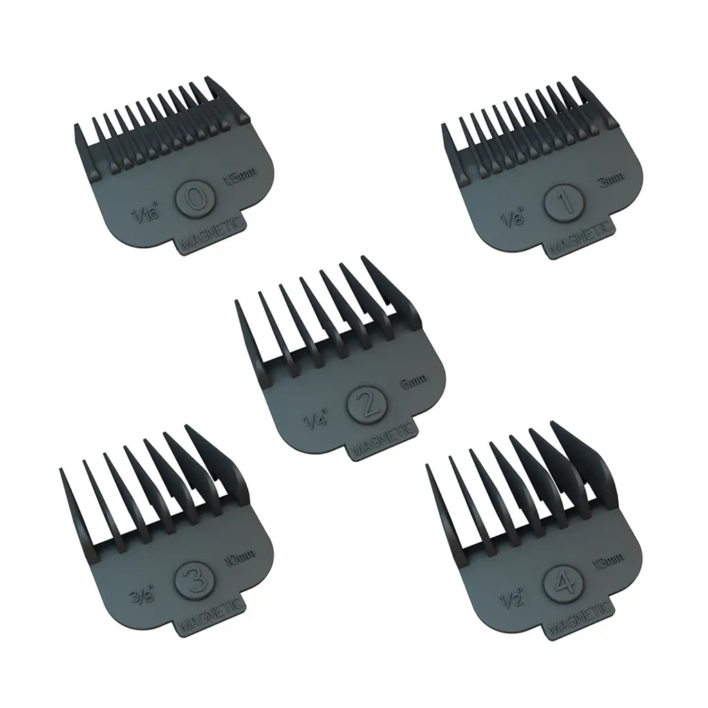 Ovaj set sadrži pet zamjenskih češljeva za Kiepe profesionalne modele šišača za kosu. Češljevi su dizajnirani za precizno i jednostavno šišanje, omogućujući različite duljine rezanja.