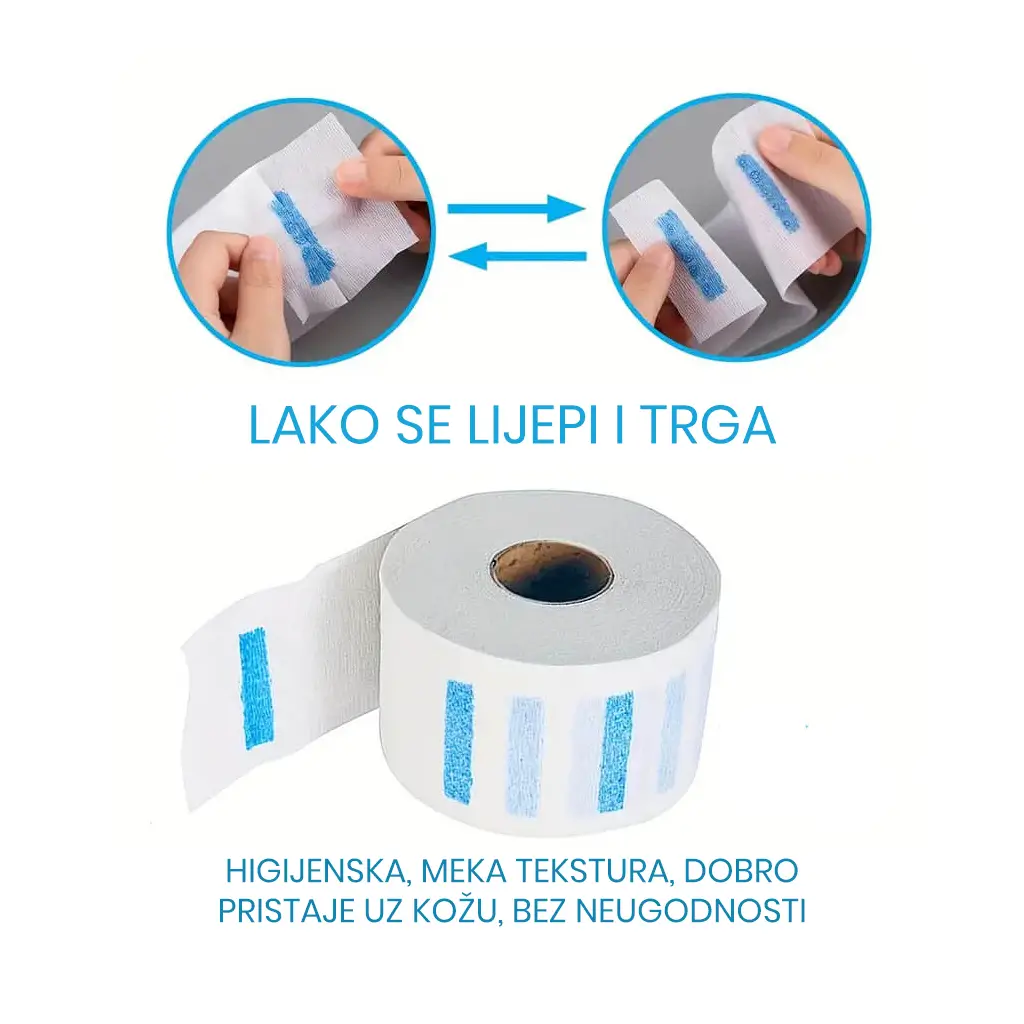 namijenjen je zaštiti vrata klijenata tijekom friziranja, sprječavajući ulazak kose ispod odjeće. Izrađen od visokokvalitetnog, vodootpornog papira, pruža udobnost i sigurnost tijekom upotrebe.