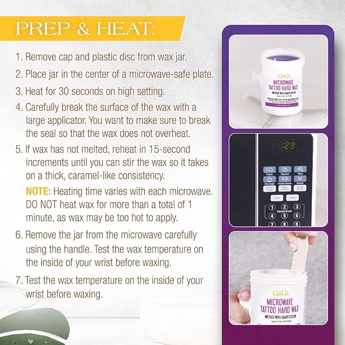 • Mikrovalni tvrdi vosak za tetovaže (226 g): Nježna formula koja se lako zagrijava u mikrovalnoj pećnici i ne zahtijeva trakice za uklanjanje.