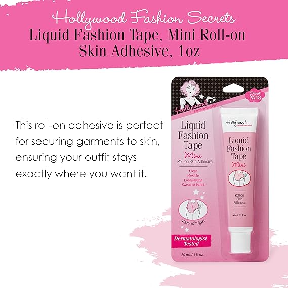 Hollywood Fashion Secrets Roll On Liquid Fashion Tape pruža jednostavno i učinkovito rješenje za pričvršćivanje odjeće, čarapa, perika, kostima, nakita za tijelo i još mnogo toga.