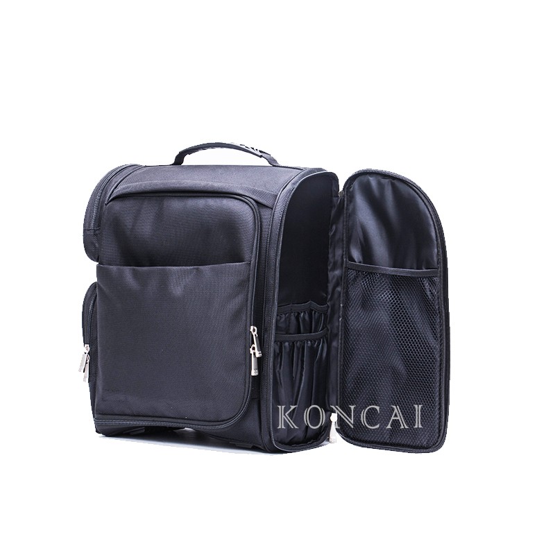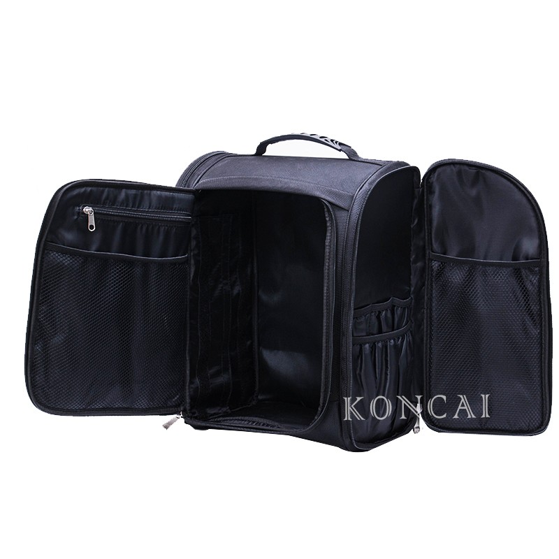 KONCAI višenamjenski profesionalni ruksak za šminku s mrežastim i bočnim džepovima pruža praktično i organizirano rješenje za pohranu vaših kozmetičkih proizvoda, idealan za profesionalne vizažiste i putovanja.