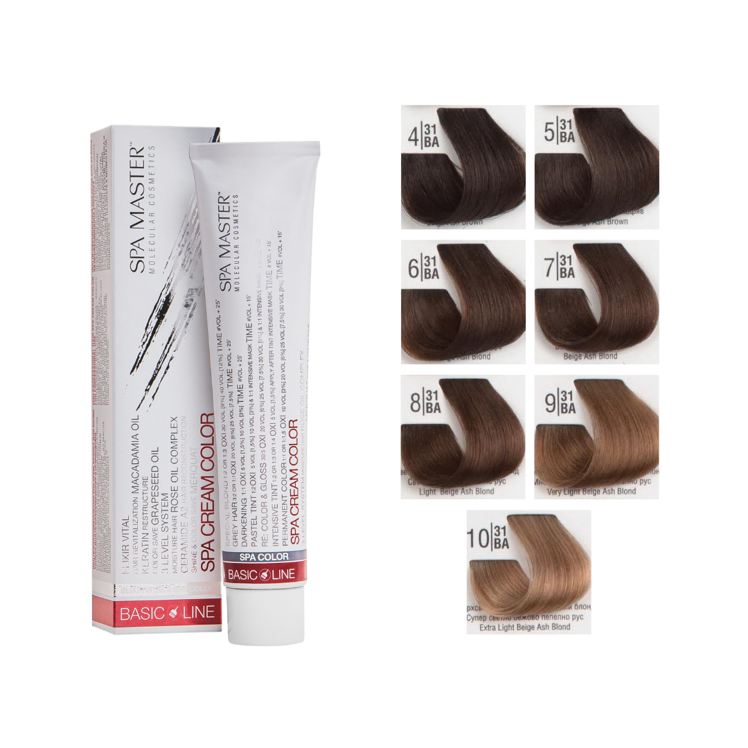 Nijansa boje za kosu10/31ba Extra Light Beige Ash Blond, 4/31ba Beige Ash Brown, 5/31ba Light Beige Ash Brown, 6/31ba Dark Beige Ash Brown, 7/31ba Beige Ash Blond, 8/31ba Light Beige Ash Blond, 9/31ba Very Light Beige Ash Blond